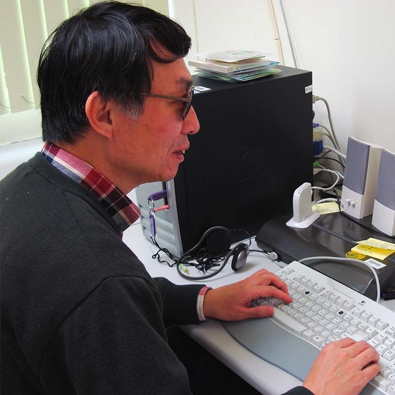 王建立校友1999年因病喪失視力,失明之前,王博士在核廢料相關技術及能源工程領域有15年的產官學經驗,曾任職於行政院原能會、美國密蘇里大學、益鼎工程公司等單位。